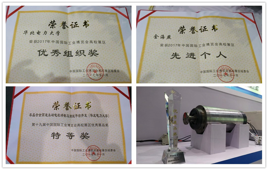 “非晶合金高速永磁电机研制及测试平台开发”项目获第十九届工博会中国高校展区特等奖