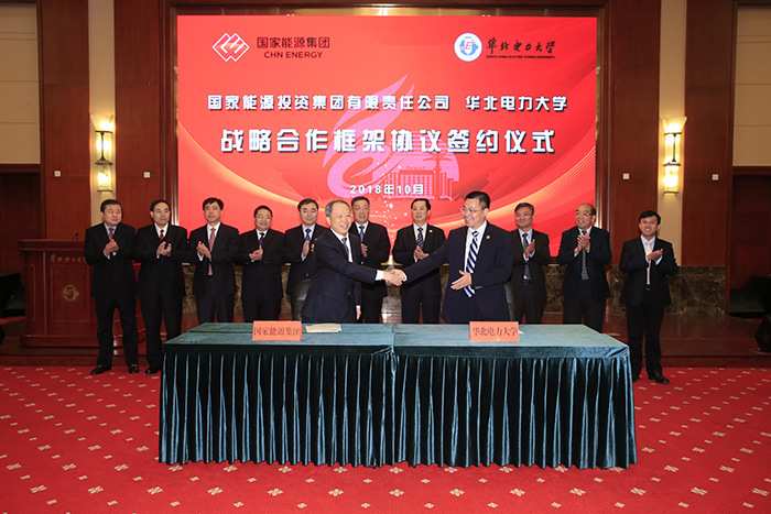 10月26日上午,华北电力大学与国家能源投资集团有限责任公司战略合作框架协议签约仪式在主楼D260举行。