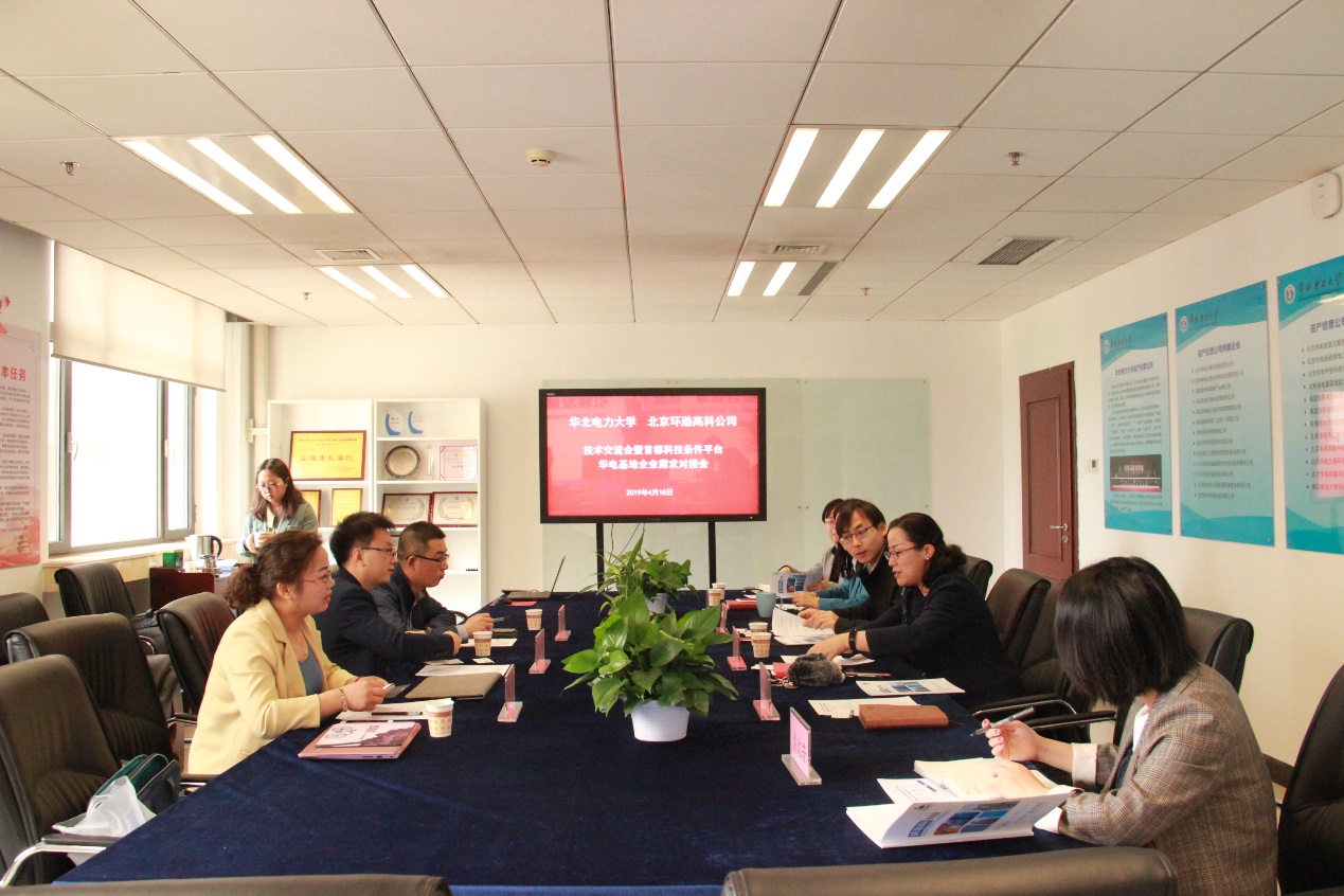 2019年4月18日,北京环渤高科能源技术有限公司张新昌总经理一行来我校开展合作对接交流活动。华北电力大学资产公司总经理金海燕、总经理助理胡鹤龄、政府事务部总监王成霞、华北电力大学能源动力与机械工程学院教授徐超一同出席会议。