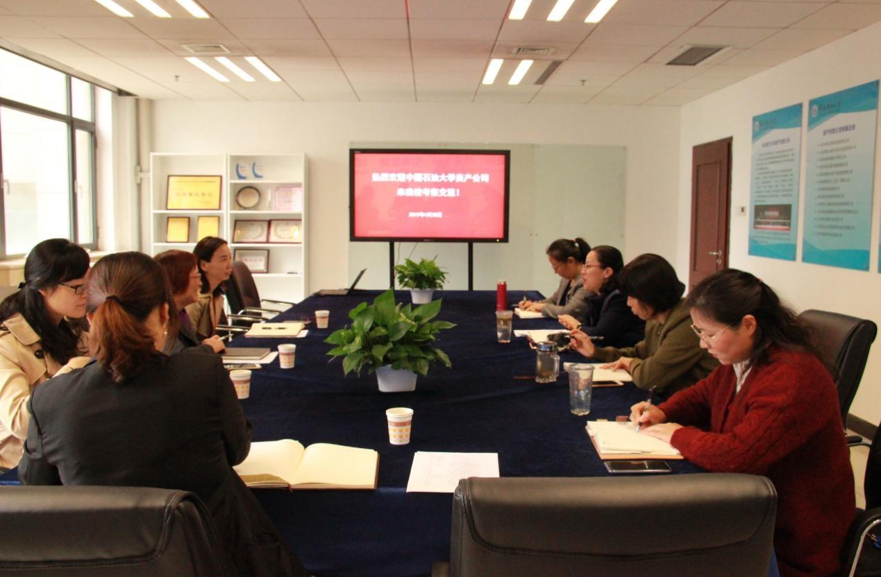 首先,王力清总经理就中国石油大学所属企业的整体情况进行了介绍。随后金海燕总经理介绍了我校资产公司的组织架构及我校所属企业的情况,同时就我校所属企业改革工作已开展的工作和未来的工作筹划进行了简要介绍。最后,双方就高校科技成果产业化及此次所属企业体制改革工作过程中的经验和遇到的问题进行了热烈的讨论。