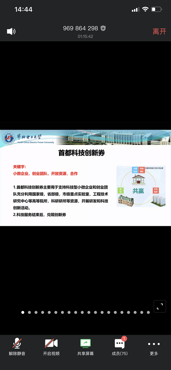 此次“百进千”活动首次采用线上活动的形式,吸引了众多的专家、台友和企业,参会人数达到100多人,最高同时在线 99人,会议受到大家的一致好评。疫情期间,华电基地将继续联合大学产业管理党支部、资产管理处党支部等相关部门和机构开展系列“百进千”线上活动为全面促进首都科技条件平台资源与服务合作共享,推动基地与企业的资源合作共赢而努力。