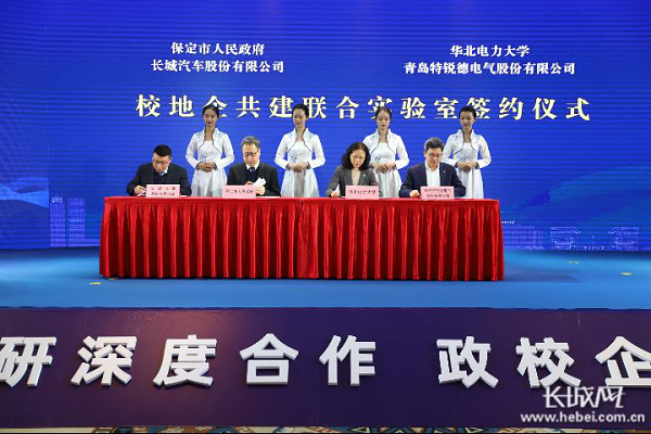 随后,华北电力大学与保定市人民政府签订校地全面战略合作协议;华北电力大学、保定市人民政府、长城汽车股份有限公司、青岛特锐德公司四方签订校地企共建联合实验室协议。共同助推能源绿色发展,为推进新时代绿色保定建设和华北电力大学建设特色鲜明高水平研究型大学注入新动能。