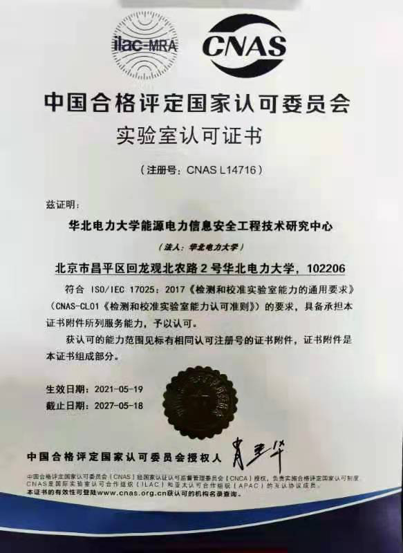喜讯|华北电力大学能源电力信息安全工程技术研究中心获得CNAS资格认证