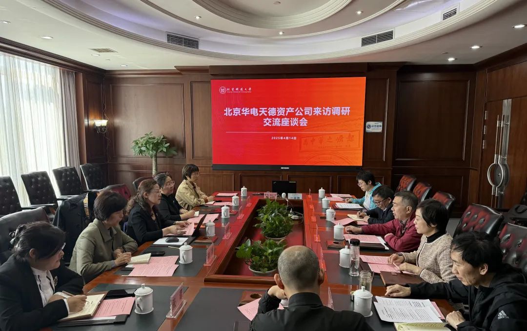 调研交流会上,孙亚东对金海燕一行的到访表示欢迎,并介绍了北科大产业发展现状、产业领域等情况。调研交流主要围绕所属企业体制改革后高校资产经营公司的发展思路与模式、资产经营公司组织架构和内控制度建设、参股企业股权管理、科技成果作价投资管理以及国有资本经营预算资金及其项目推进情况等方面进行了深入交流和探讨。